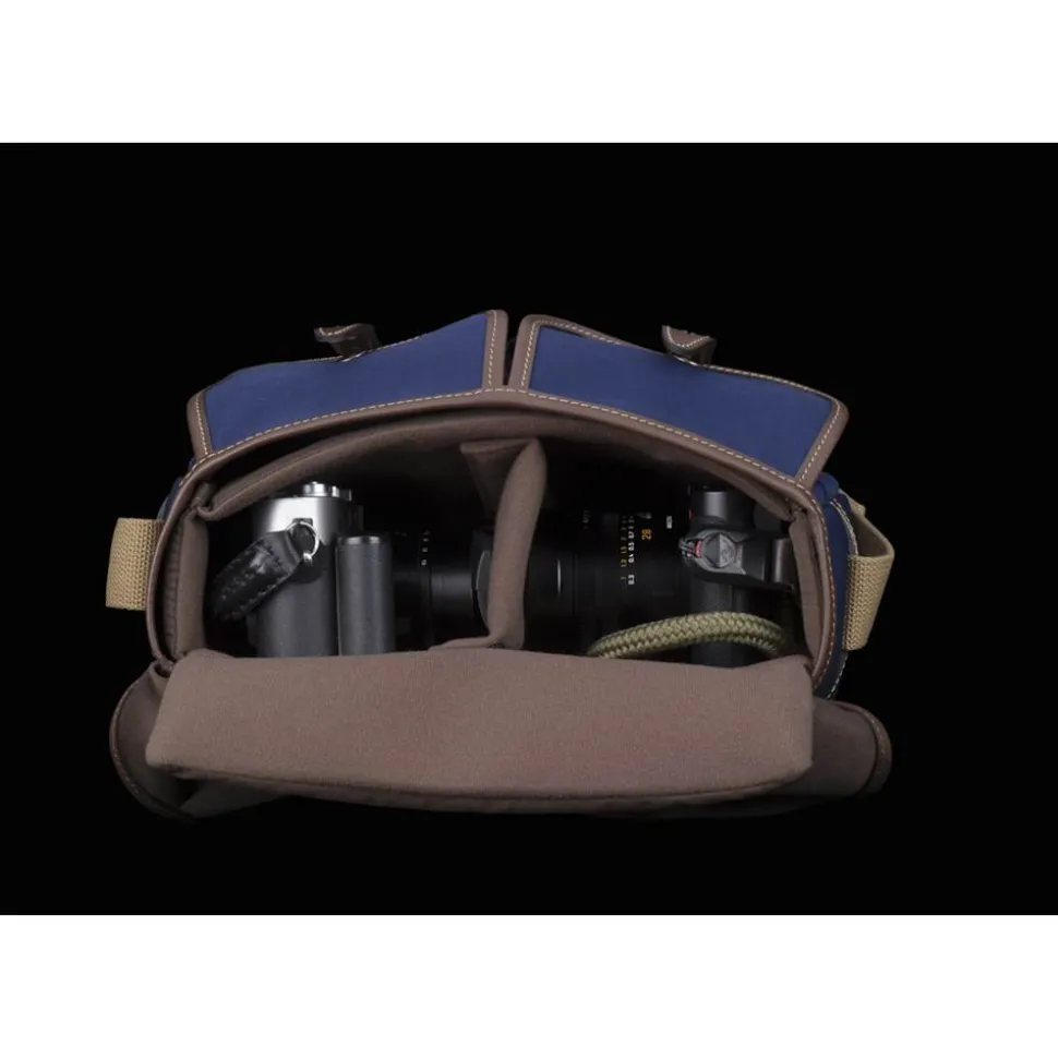 The Hadley Small is a compact bag yet has a larger capacity than you might think. You can tell from the dimensions that it will fit 2 rangefinder or small mirrorless cameras but its flexible body also allows it to flex out to easily fit a mid-sized DSLR and 2-3 small to mid-sized lenses. The bag’s two front pockets are fitted with a secondary stud in their top outer corner – open this stud to create extra space or close it to form a handy pen holder.