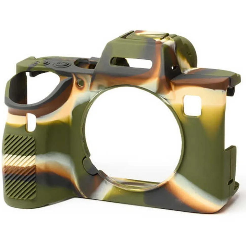 Custom fitted silicone case for the and cameras in camouflage pattern, ideal for wildlife photographers.