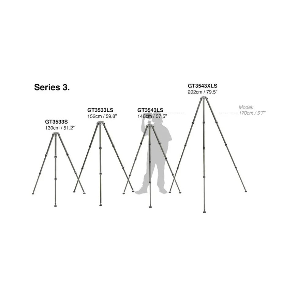 Series 3 Systematic tripods have a top leg diameter of 32.9mm, making it the perfect choice for those who want to travel light, but need enough stability for professional equipment. The GT3543XLS is the 4 section extra long model, for users requiring overhead height and replaces the GT3542XLS.