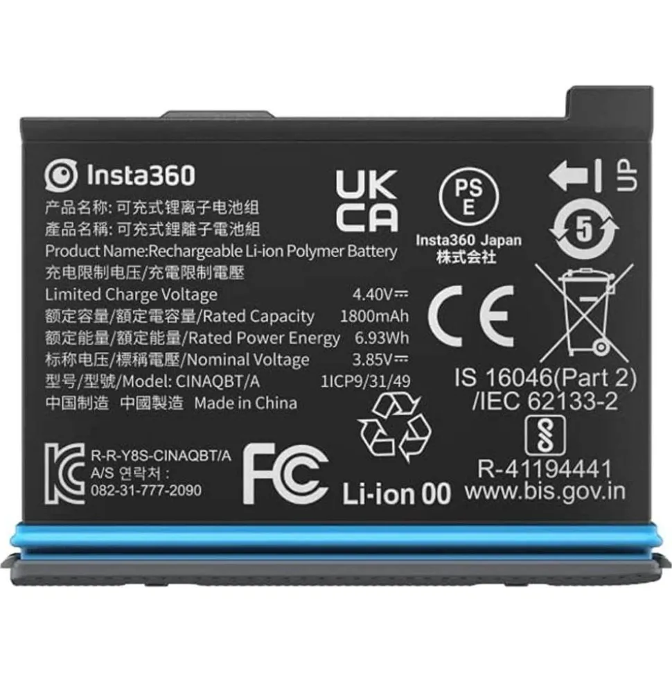 Power your X3 action camera with this Rechargeable 1800mAh Battery from Insta360. With a 10% increased capacity for a total of 1800mAh, this battery ensures you can capture all the action for up to 81 minutes. Its lithium-ion chemistry can be recharged in just 90 minutes for continued use.
