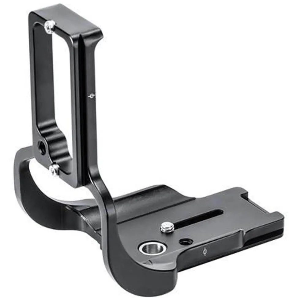 An L-plate or L-bracket can maximize the stability and ease of use of your camera on a ballhead when changing from a horizontal (landscape) to a vertical (portrait) shooting position. Leofoto provides specially adapted L-plates for specific camera models, both for DSLR cameras and for compact system cameras and digital compact cameras. As soon as new cameras appear on the market, Leofoto designs a new L plate for that special camera model.