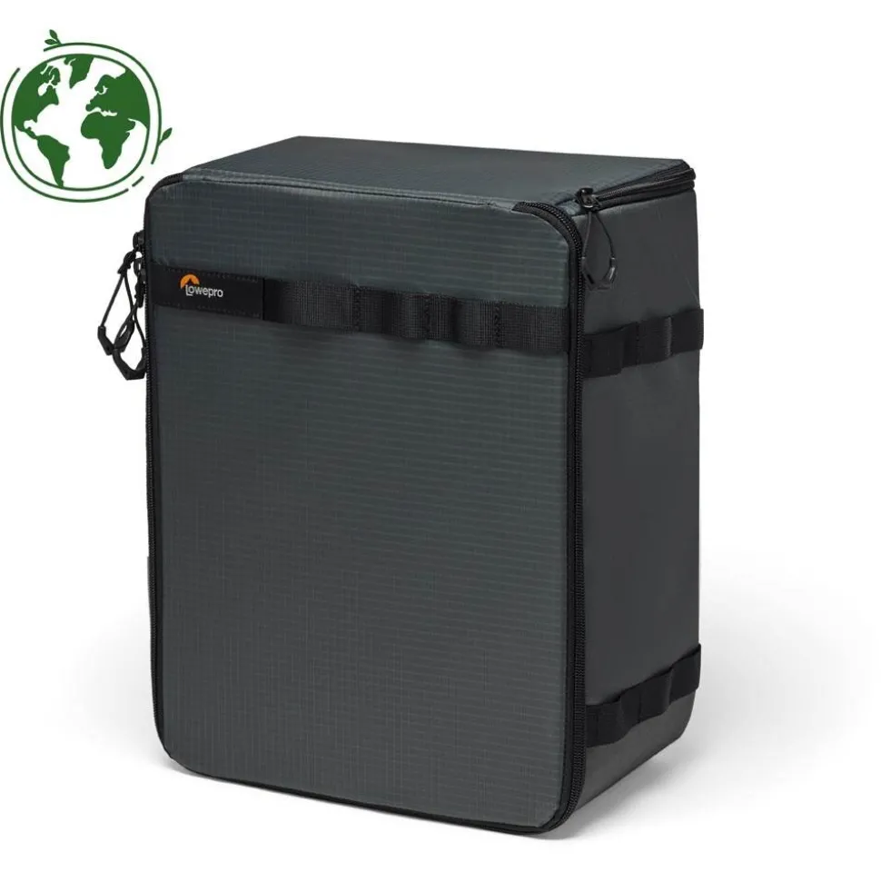 The GearUp PRO XXL camera bag organizer is the perfect portable solution to protect your camera, lenses and accessories. Flexible interior dividers adjust to secure full-frame mirrorless/DSLR cameras with portrait grip and lens attached up to 70/200 mm f/2.8, professional drone or video CSC set up with a stabilizer, plus some accessories. Features double-access: a main full front opening that reveals your full interior gear setup, secondary top access for quick and fast access to your camera. The secondary access is perfect when GearUp PRO XXL is used in combo with another backpack, such as Photosport 45L, carried alone or inside larger bags such as PhotSport PRO 55L & 70L. Compatible with GearUp strap system (not included) for multiple carrying configurations. Made with 85% of recycled fabric*, GearUp PRO keeps your camera and accessories packed, protected and ready to shoot.