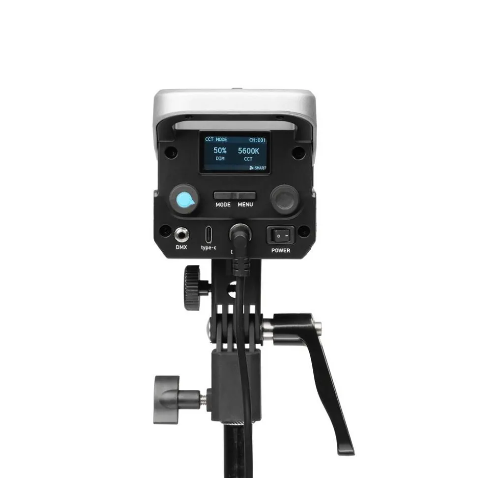 Control dimming, CCT, effects and more with two easy-to-use knobs, buttons, and a rear-facing screen. Control with your phone or tablet through Bluetooth and the free NANLINK app. Want to use your mobile devices for something else? No problem, control with the WS-RC-C2 Handheld Remote (sold separately) through built-in 2.4G. A locking metal DMX/RDM port is provided for advanced control, and the USB-C port can power DMX receivers (sold separately).