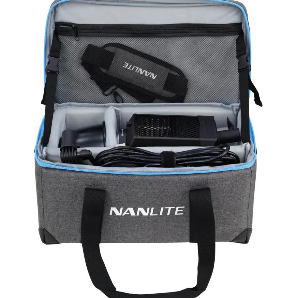 When you don’t need that much power, the Forza 150B can be dimmed from 0 to 100% and every step in-between. When you do need more light, the separately available FL-11 fresnel lens increases the output to a formidable 54,290 Lux (5,043 fc). Do More with the FM Mount One of the reasons the Forza 150B can be so compact and lightweight is that it has the Nanlite FM Mount. A wide range of dedicated light modifiers are available for this mount, such as multiple types of softboxes and projection attachments. A Bowens-mount adapter that fits inside the travel case is included so you can utilize a vast number of light-shaping tools with the Forza 150B, while still reaping the weight and space-saving benefits of having the considerably smaller FM Mount. Changing modifiers is as easy as pressing a button and twisting a quarter turn. Get Creative with 12 Effects Not only is the Forza 150B bright, compact, and lightweight, it’s also got some above-average capabilities. On board are 12 practical effects: CCT Loop, Flash, Pulse, Storm, TV, Paparazzi, Candle/Fire, Bad Bulb, Firework, Explosion, INT Loop, and Welding. Many Options for Power Optimized for use in the studio or on location, the Forza 150B can run off either the included AC adapter or a 14.8w or a 26V V-Mount battery (Not Included), so you can operate in any location regardless of power availability.