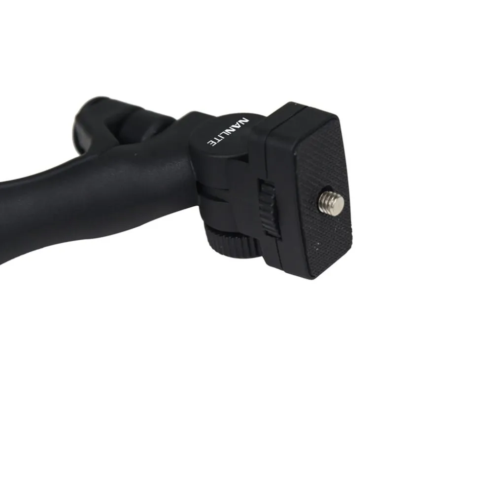 The NANLITE AS-MT/HG-1/4 can be used either as a hand grip for handheld shooting or can fold out to a table top tripod making it compatible with small NANLITE fixtures.