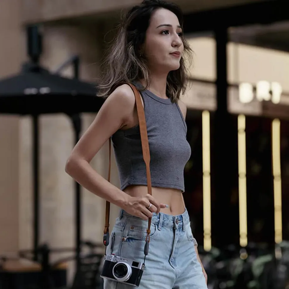 - Wide-narrow integrated design for the strap, combining simplicity and fashion while minimizing interference with the camera