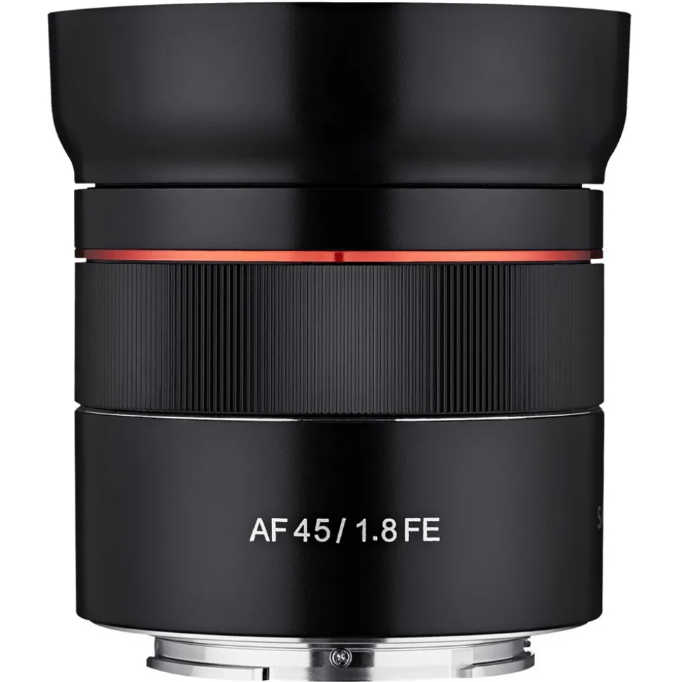 A sleek and versatile prime, the Sony E-mount AF 45mm f/1.8 FE from Samyang is a normal-length prime characterized by its compact design and bright f/1.8 maximum aperture. The optical design incorporates a pair of aspherical elements and one extra-low dispersion element, which help to suppress spherical and chromatic aberrations for improved sharpness, color accuracy, and clarity. An Ultra Multi-Coating has also been applied to reduce flare and ghosting in order to achieve higher contrast when working in strong lighting conditions. Additionally, the lens’s autofocus motor works in conjunction with Sony camera s’ AF systems for quick and precise focusing performance, and manual focus override is also available for more refined control.