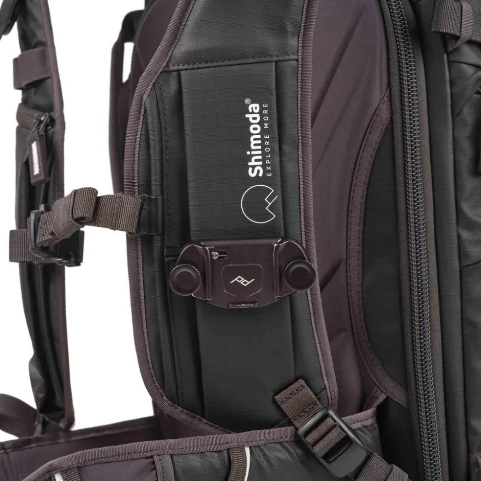 - Removable/Replaceable Shoulder Strap: Capture Strap can be quickly swapped with a standard Shimoda harness strap for long travel days where a zippered cell phone pocket (on the standard Shimoda strap) would be more useful than the camera clip mounting capability.
