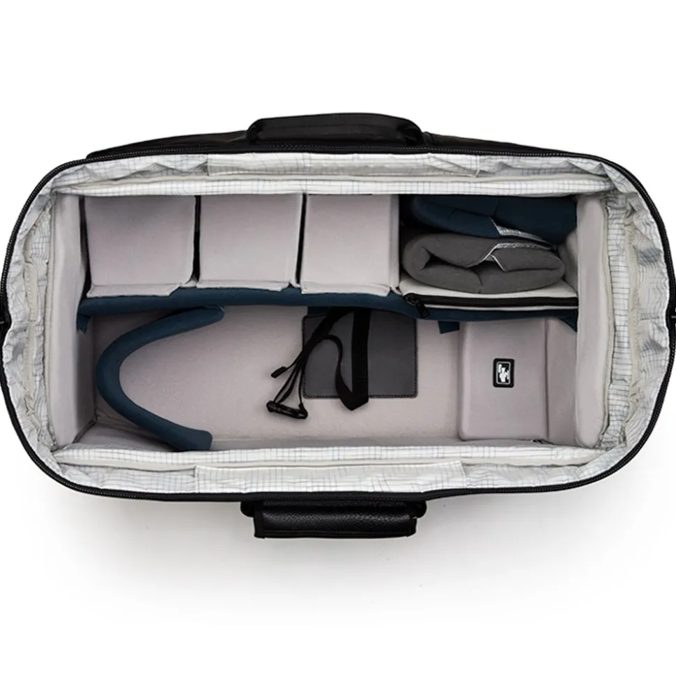 | The Cineluxe Backpack 24 fits professional camcorders, cinema cameras and ENG rigs from ARRI, Sony, Canon, RED, Blackmagic and others. The interior height (12 in/30 cm) and length (21 in/53 cm) enables camera rigs to be stored with baseplate, matte box, monitor, mic and battery attached, ready to shoot. This is the first ever video camera backpack developed with a quick access “doctor bag” style opening. The bag includes two padded wraps and a padded zippered pouch, as well as a protective lens pillow and a camera security strap. To ensure the Backpack 24 is comfortable to carry even when fully loaded, it features Tenba’s ventilated Airflow back panel and Pivot-Fit harness straps that automatically adjust for different shoulder and body types. |
