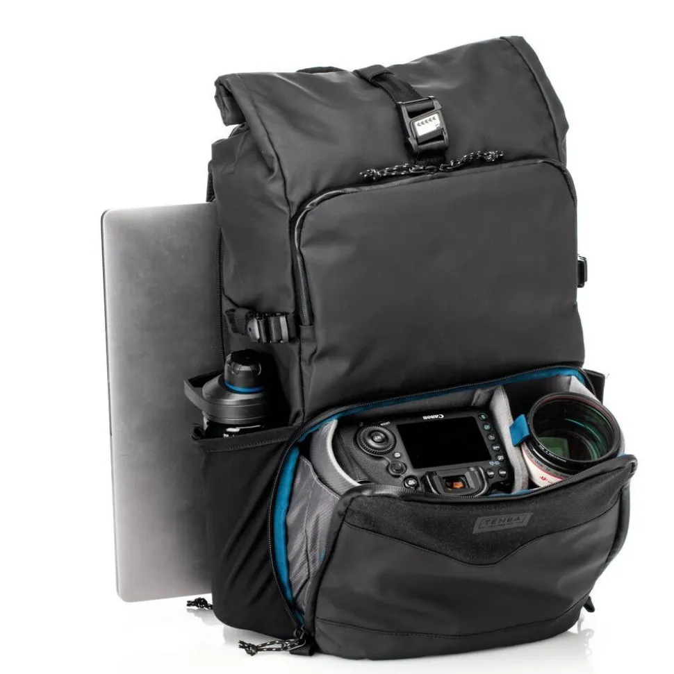 - Comfortable Airflow Harness – The Airflow harness comprises ventilating 3D airmesh and Tenba’s Pivot-Fit™ auto-adjusting straps to ensure a comfortable fit. The hip belt can be used to support the weight of the bag when it is loaded, or the belt can be easily removed when loads are lighter.