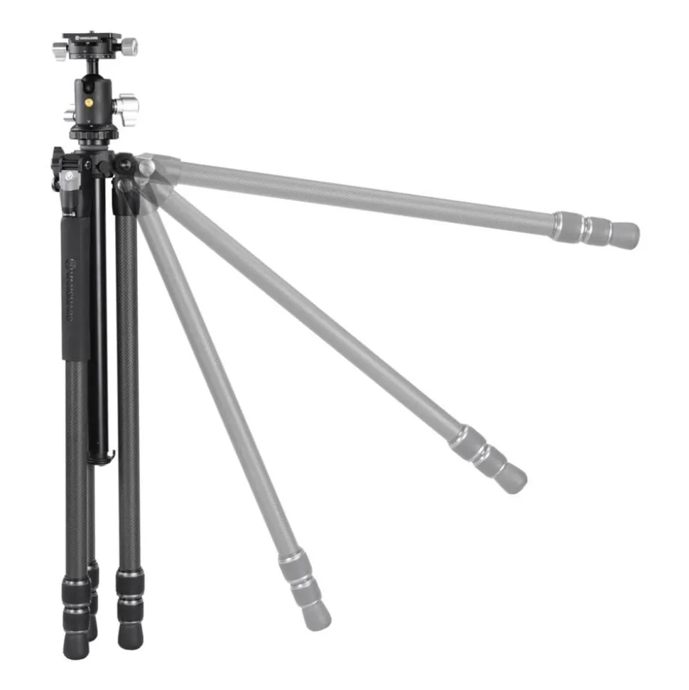On top of the tripod is a VEO BH-160S Dual Axis ball head with 15kg load capacity. This allows you make micro adjustments using the most appropriate axis, without needing to loosen the main ball joint and risk losing the overall setup. Alternatively, you can get the perfect level and shoot panoramas, whatever angle your tripod is set up at.