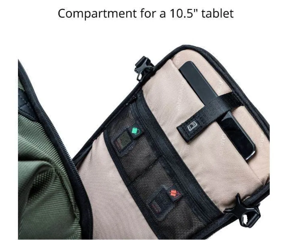 This backpack is perfect for a mirrorless kit and can hold a DSLR (or larger mirrorless) camera, 6-8 lenses, a flash unit, a 10.5” tablet and multiple accessories such as memory cards, cables, batteries and a charger. It will also take up to two travel tripods using the expandable side pockets.