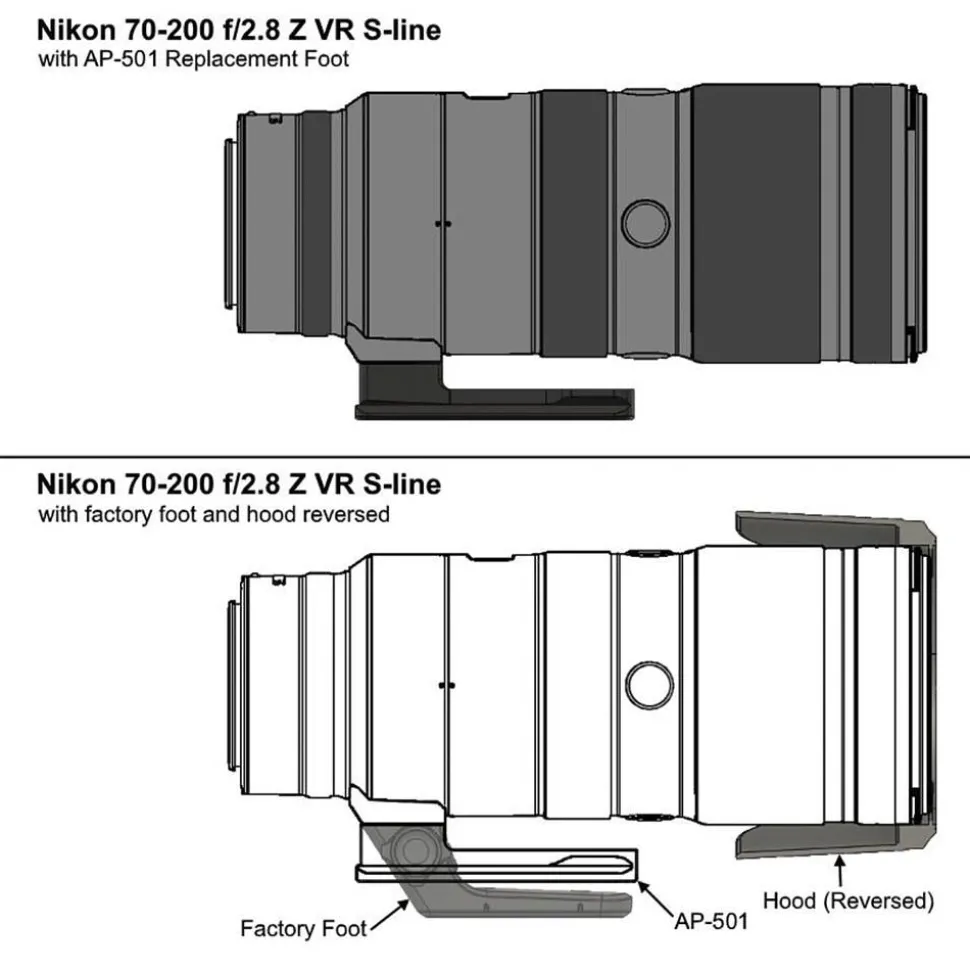 The AP-501 replaces the stock foot on Nikon Lenses.